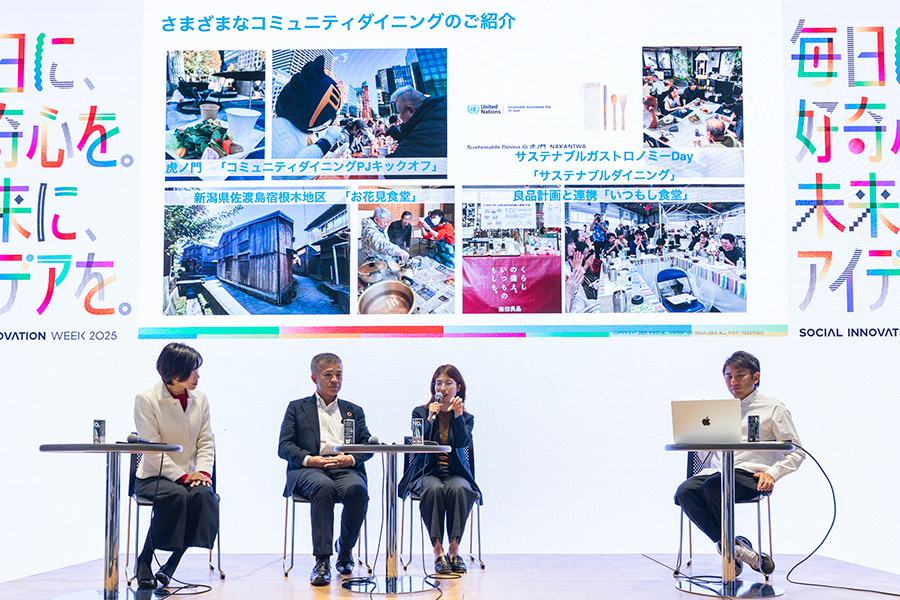 杉浦さんは渋谷区で毎年6月に開催しているイベント「おとなりサンデー」を紹介。渋谷区では町内会など地縁関係が高齢化しており、行政課題のひとつにもなっていることから、こうして近所同士で顔を合わせる機会をつくっています。山口さんのコミュニティダイニングの取り組み紹介を受けて、杉浦さんは渋谷区のイベントでも参考にしたいと述べました。